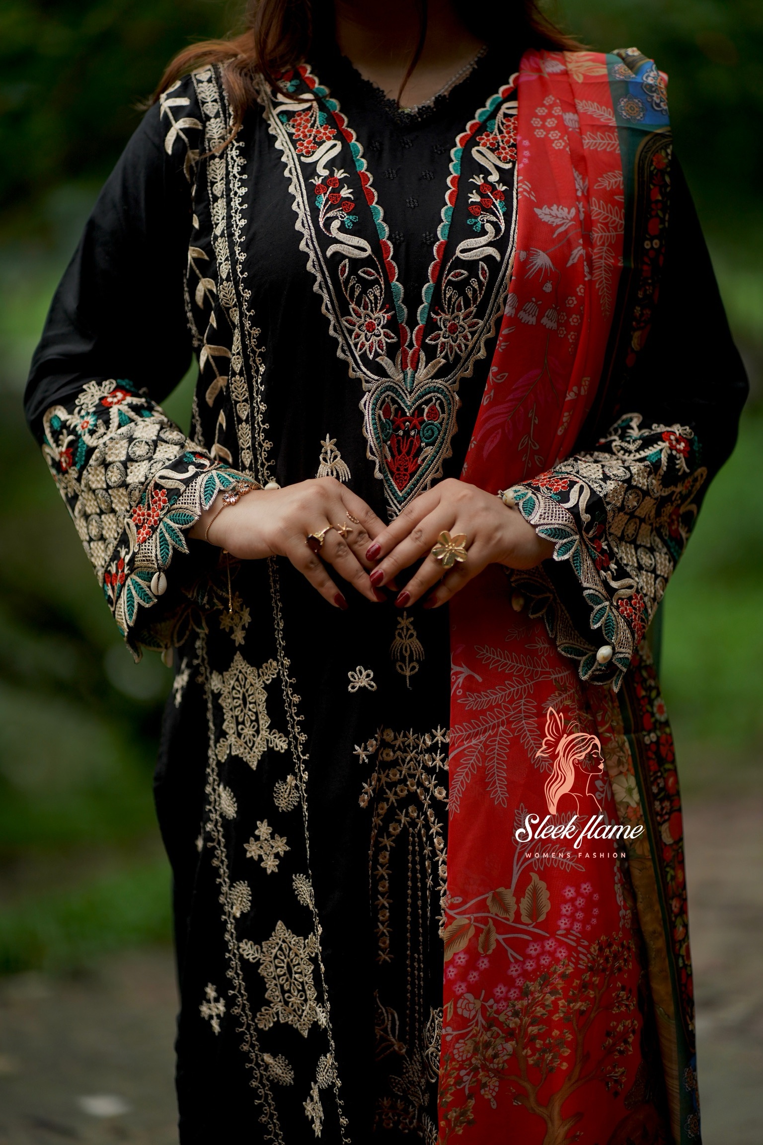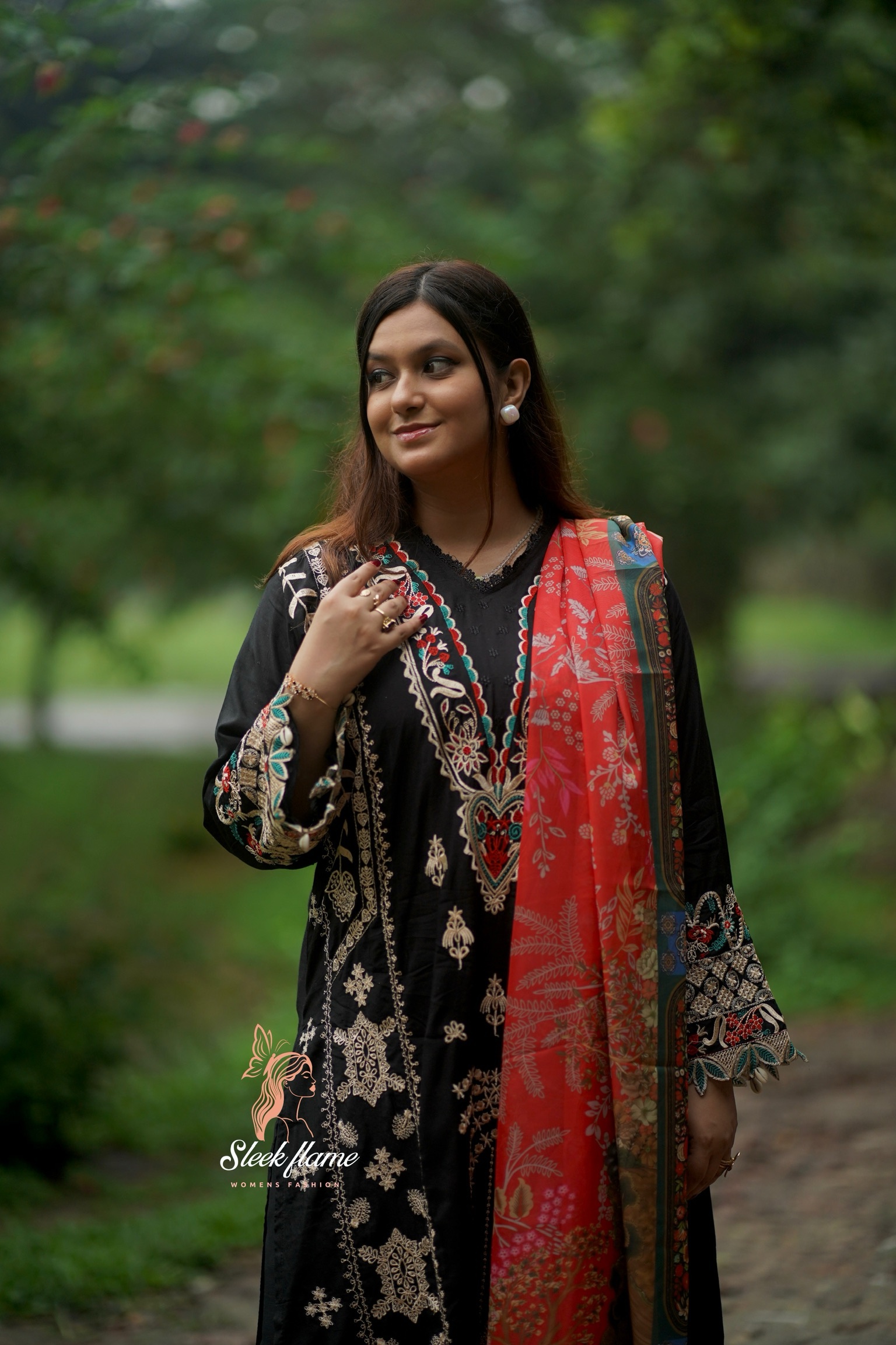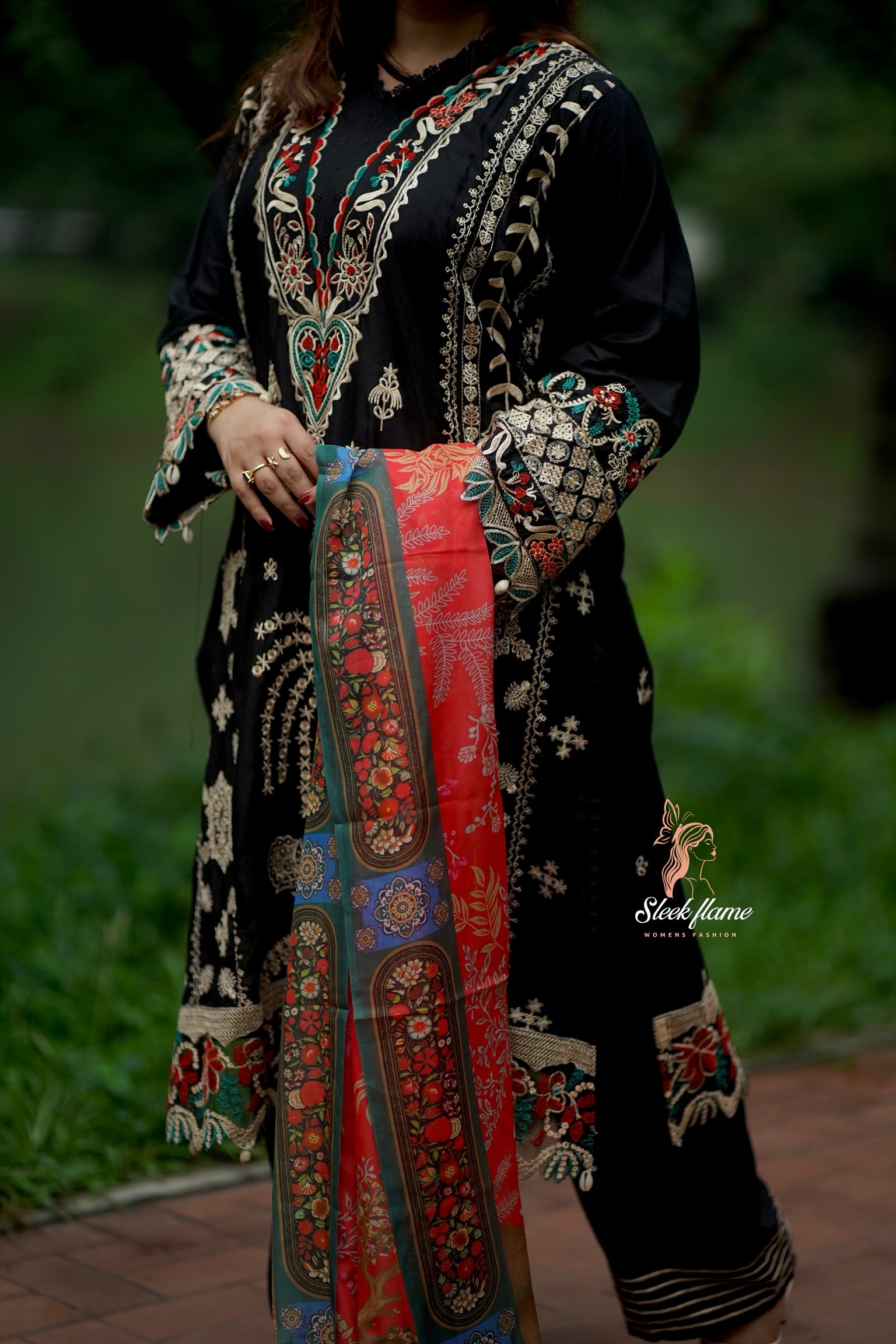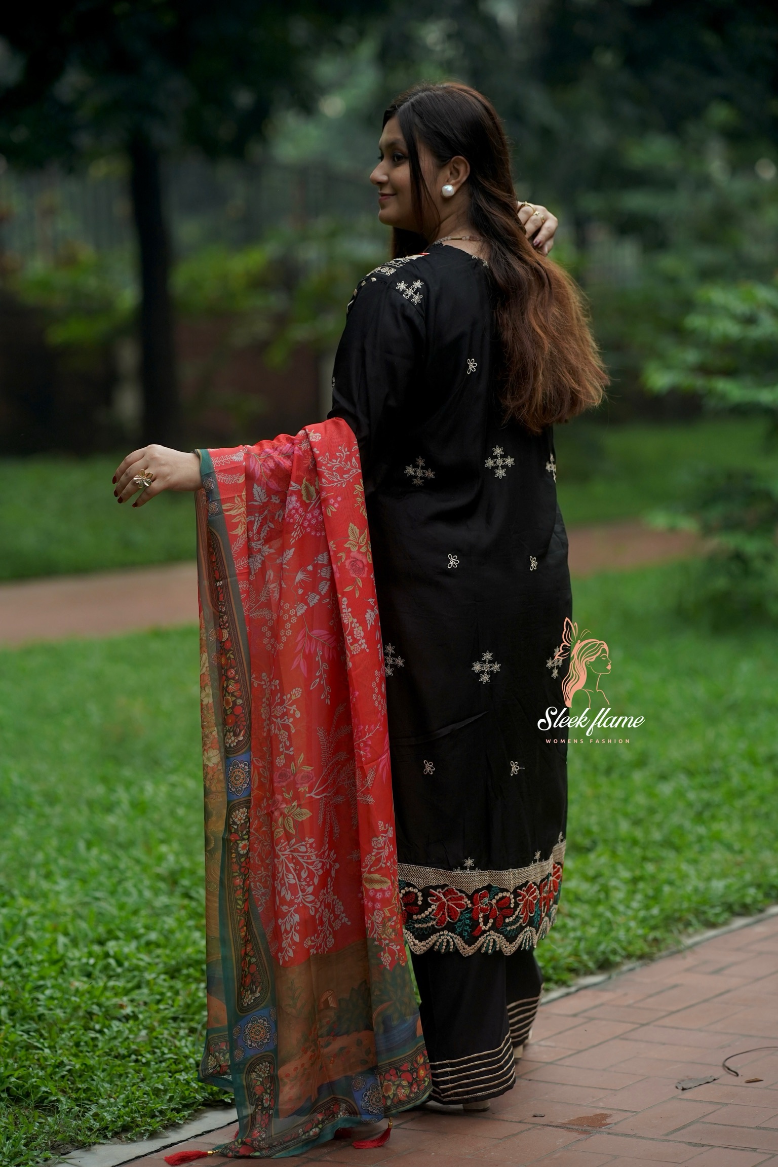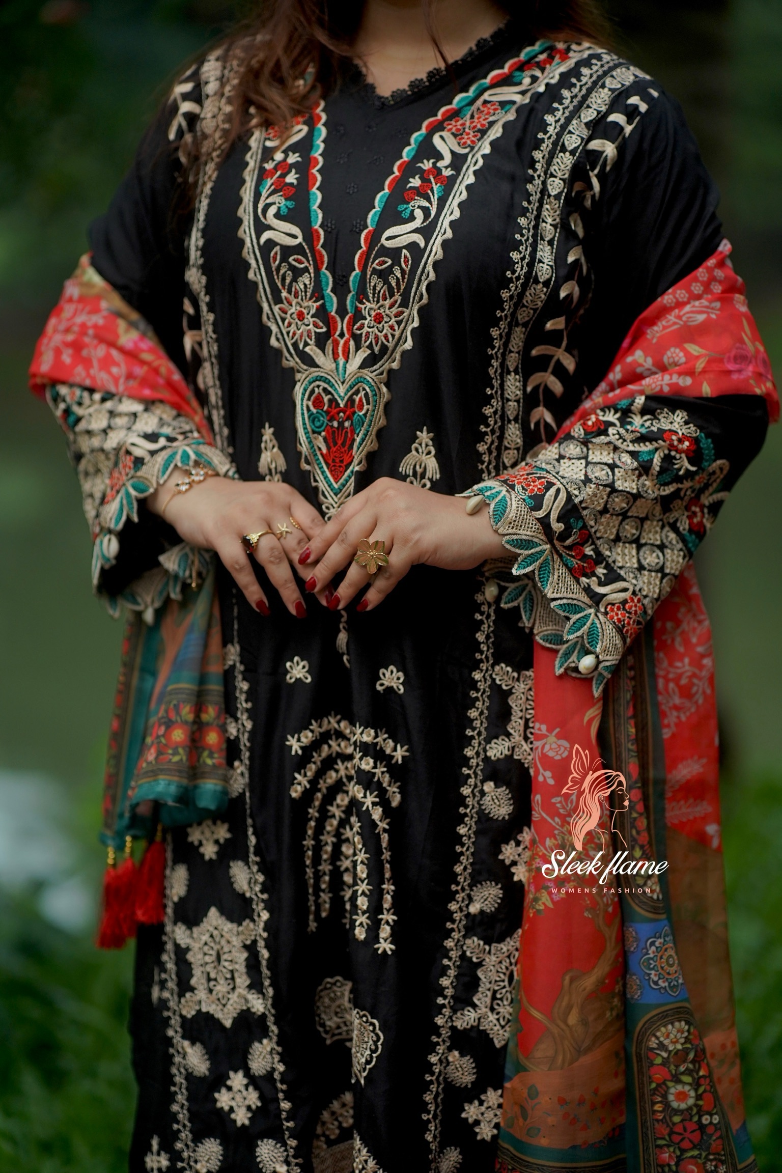 Dress front back all over embroidery work. Pant layered with embroidery work