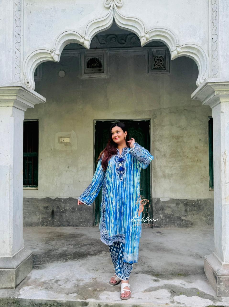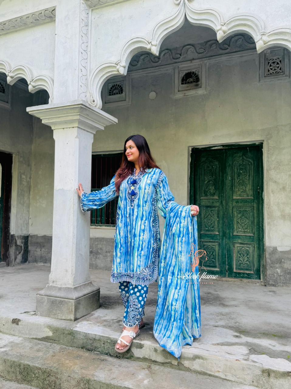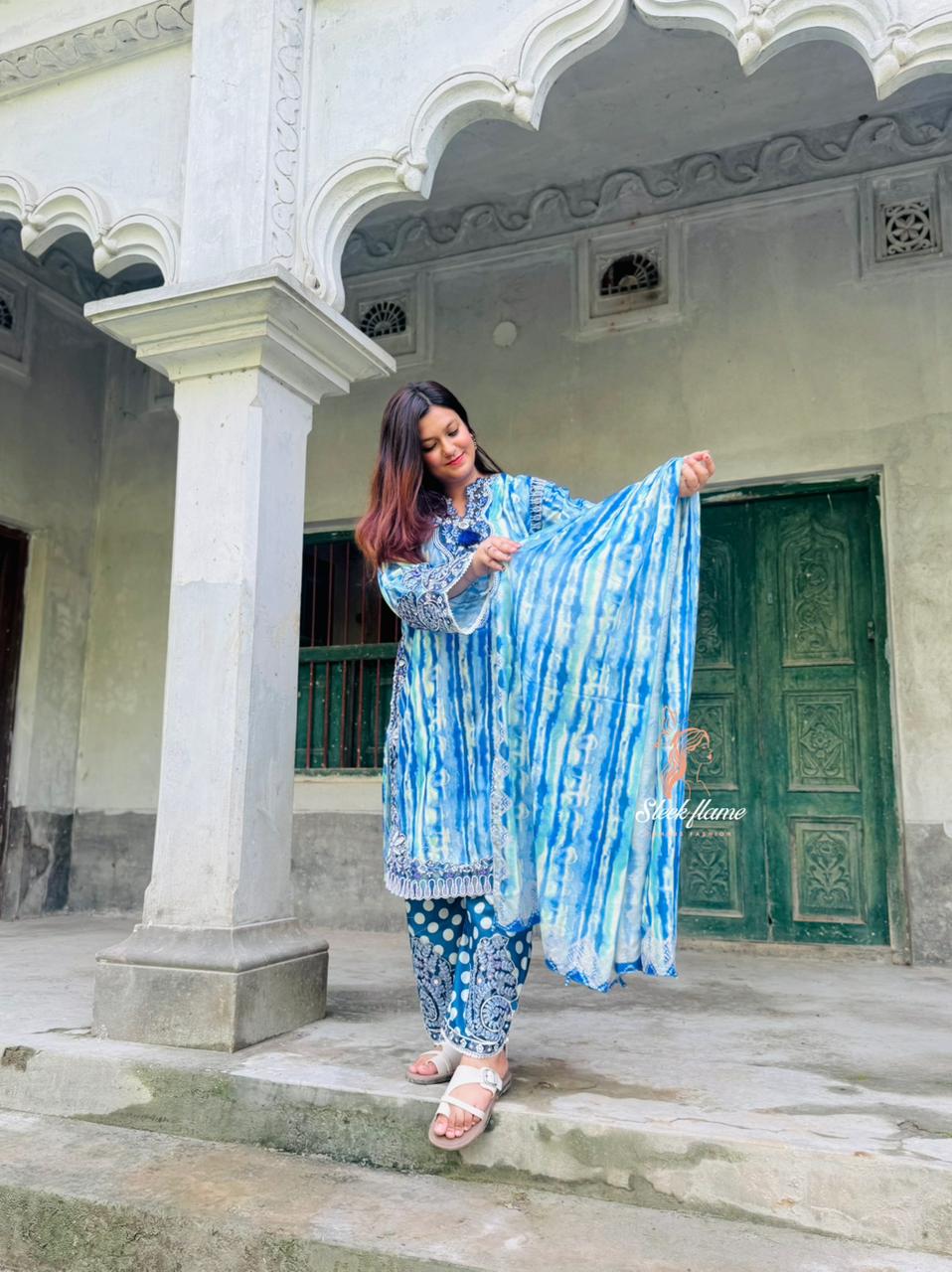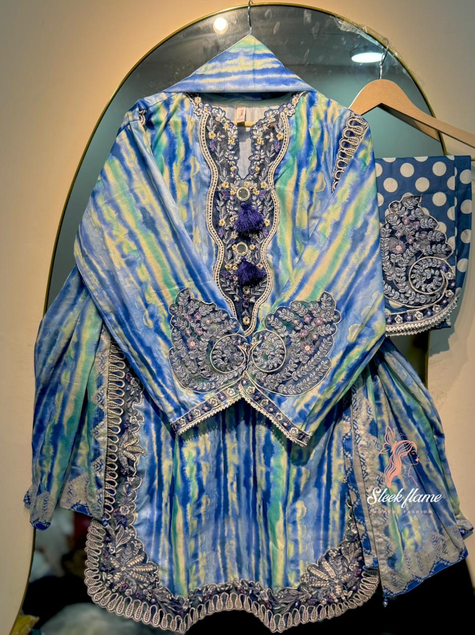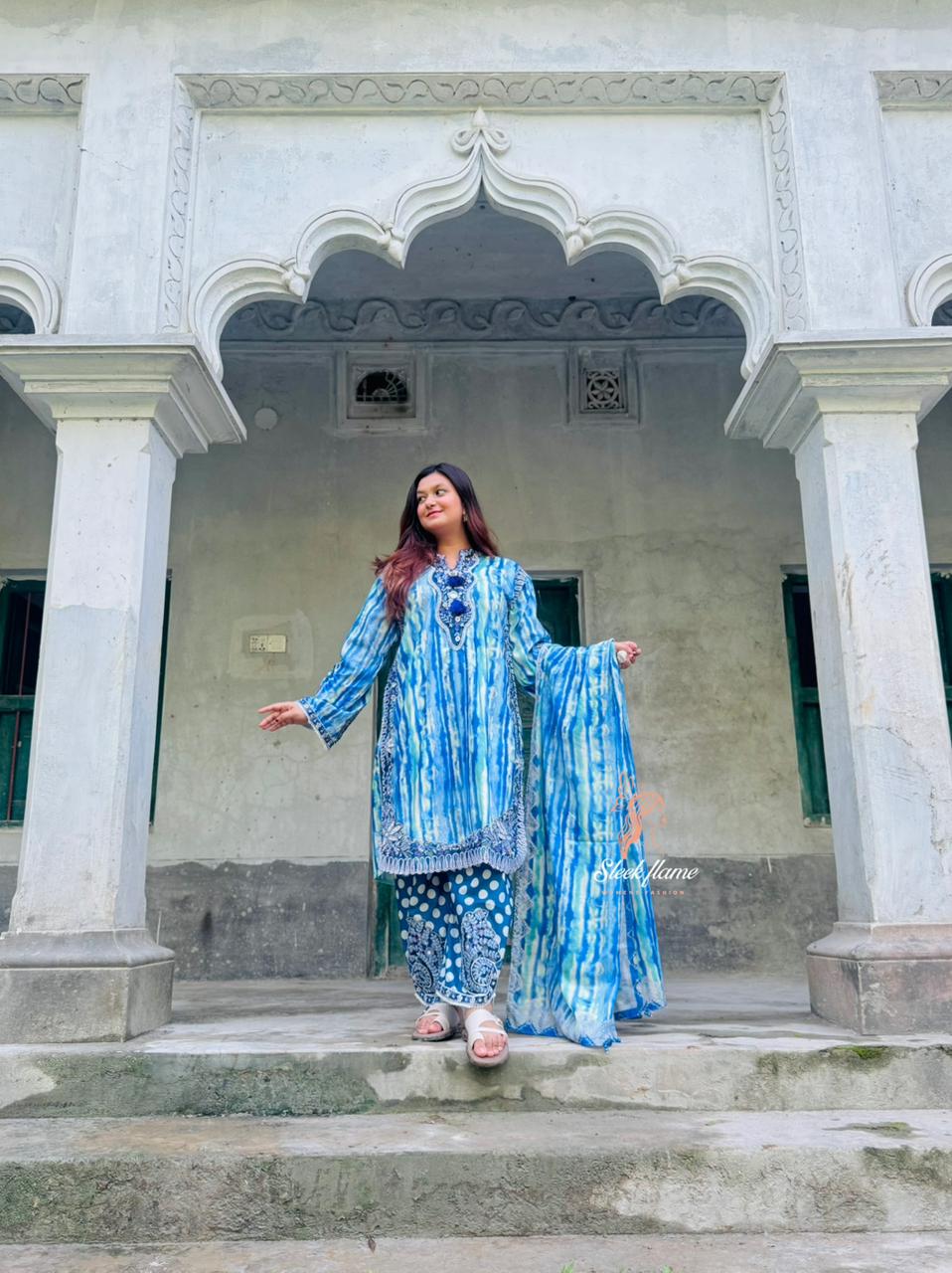 Material: Cotton kameez with embroidery work on neck, sleeves, side borders & Damaan.