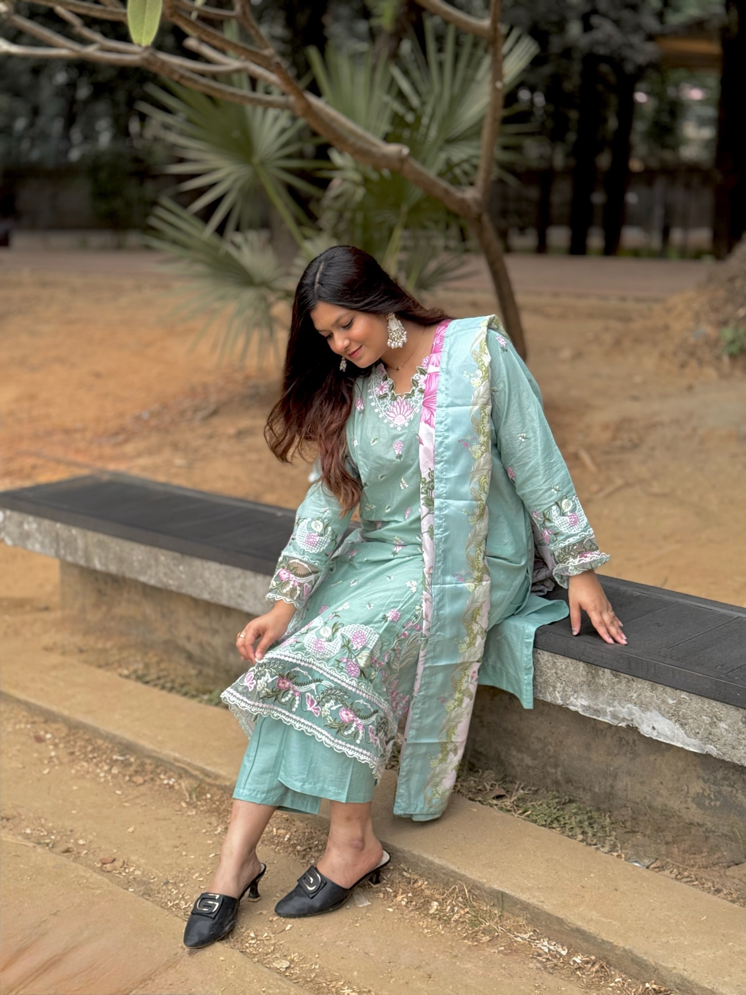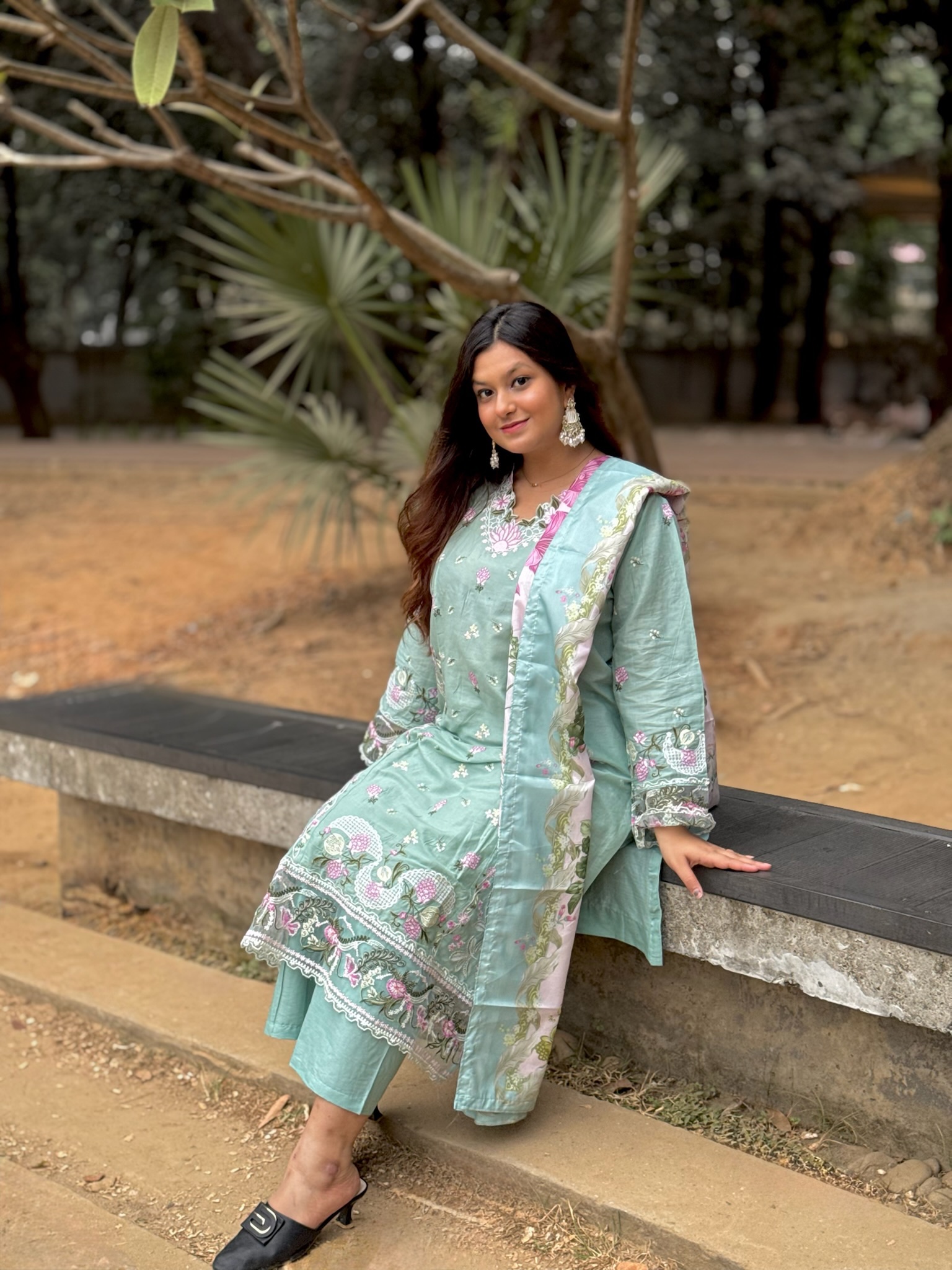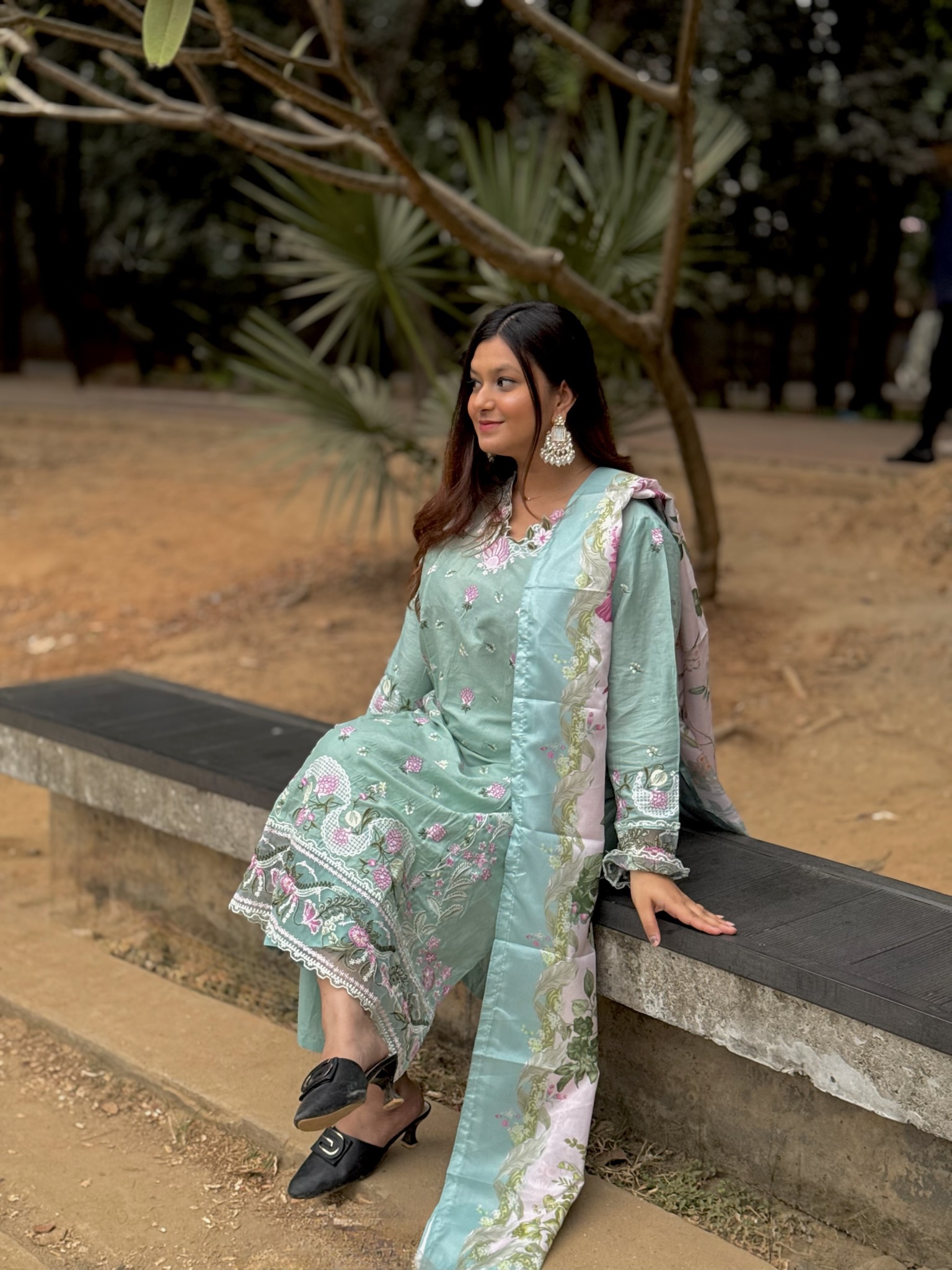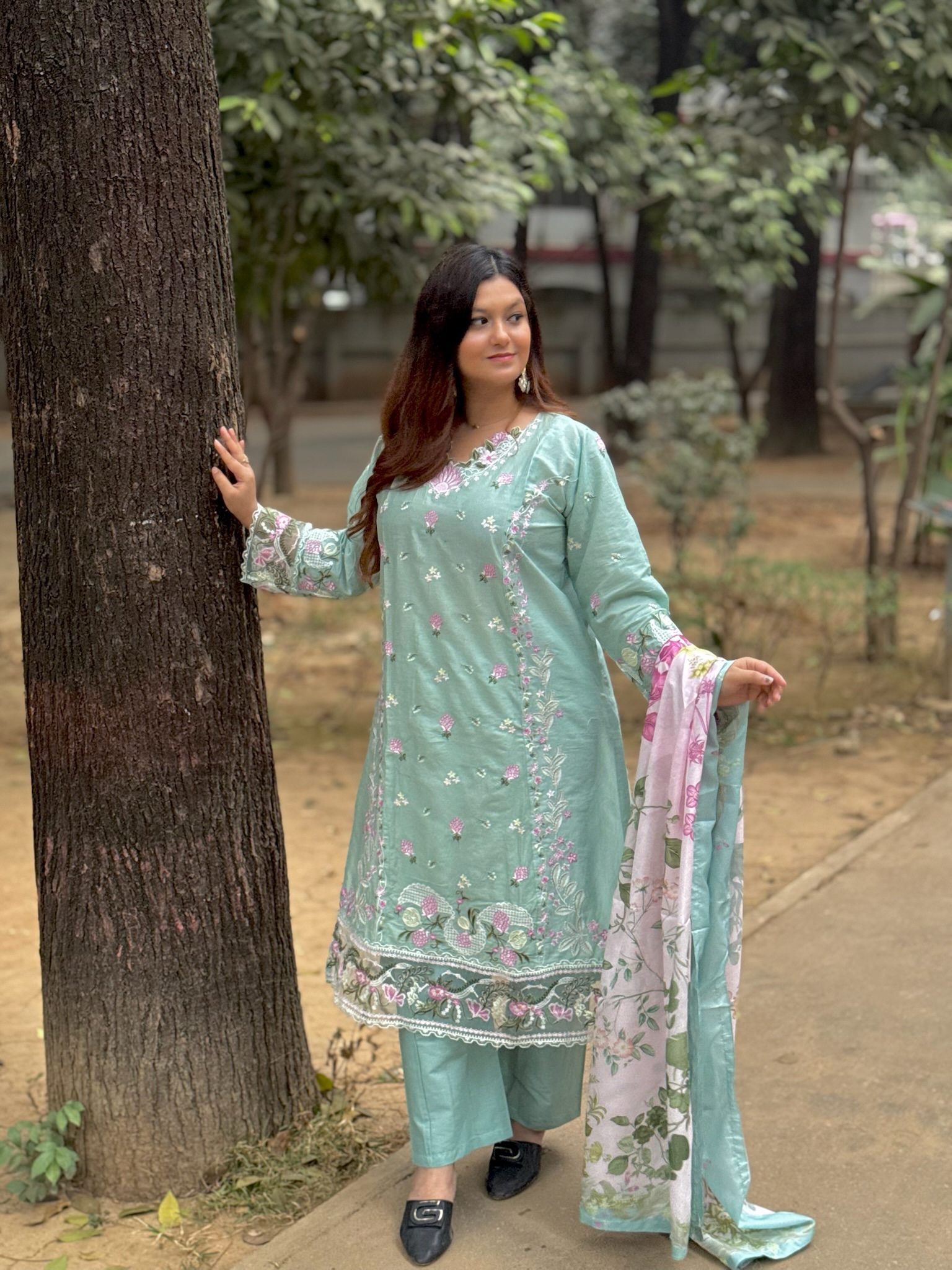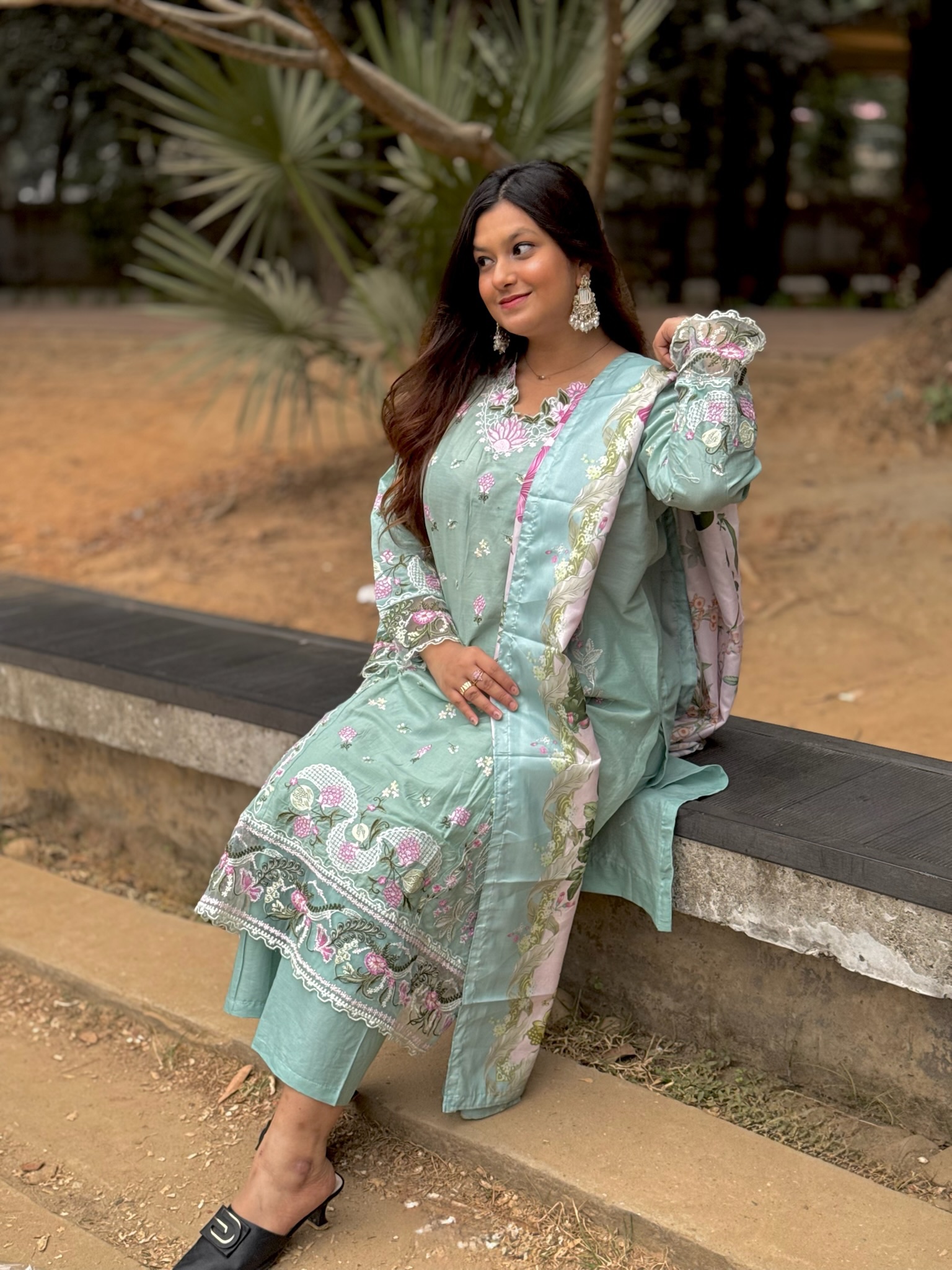 Pakistani inspired stitched 3 piece kamiz set