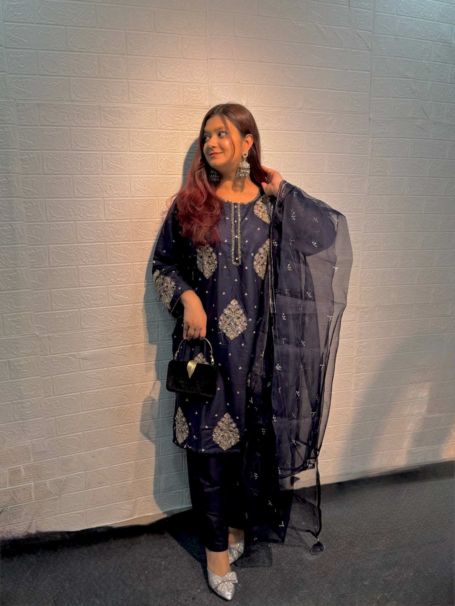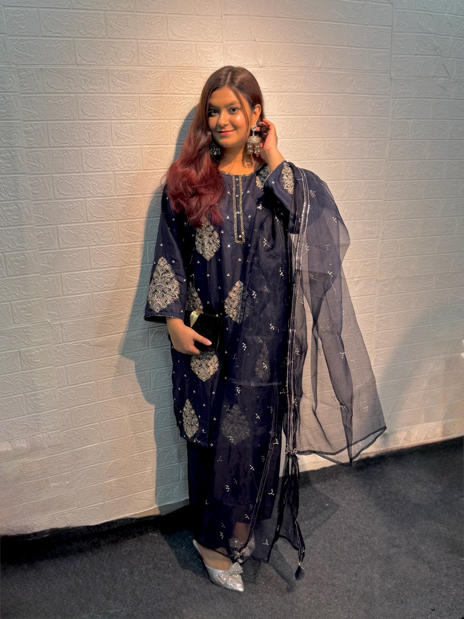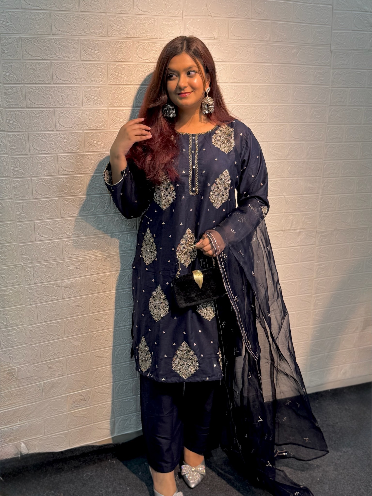 Material: Cotton with jori embroidery work on all over body. Karchupi katdana pearl work on whole dress.