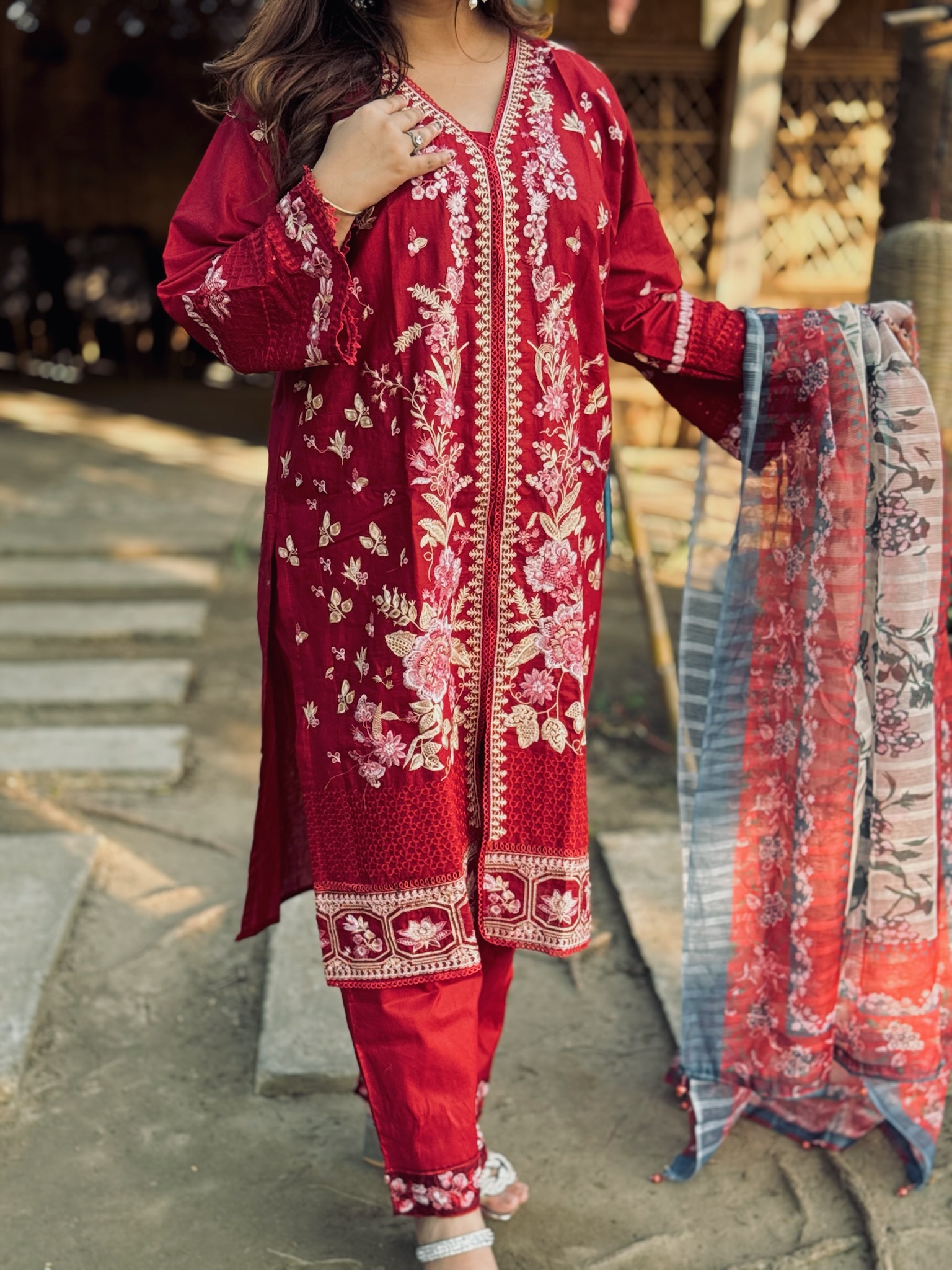 • Cotton Readymade 3 piece wear with embroidery work