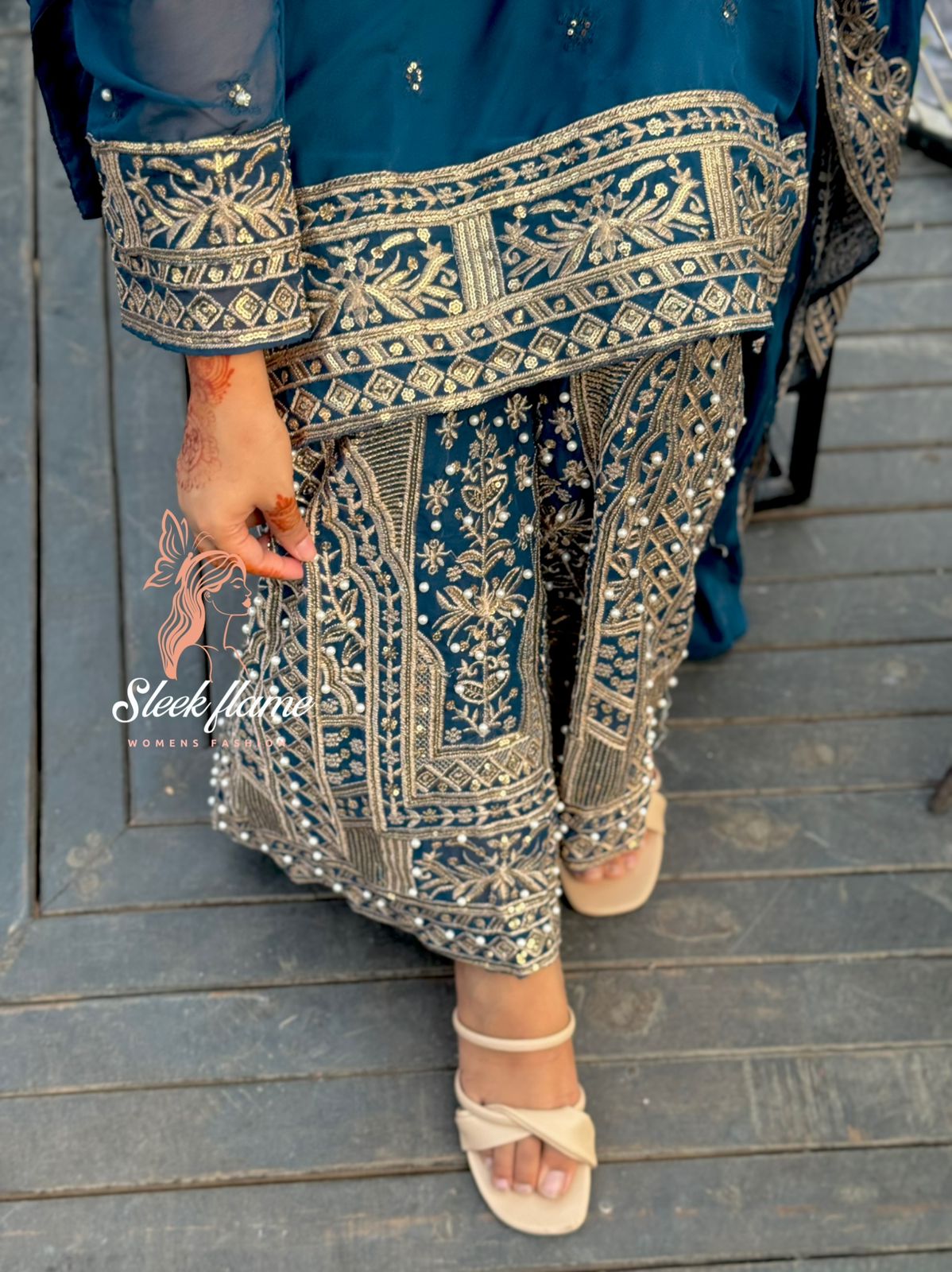 All over dress,gharara and dupatta embroidery sequence and pearl work